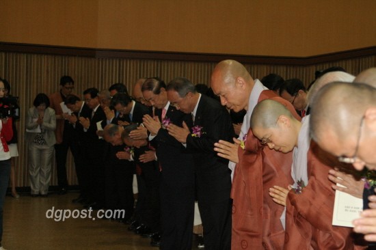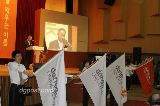 The UI proclamation was completed successfully with a lot of trustees, professors and students as well as the chief director and the president taking part in the ceremony. Oh Young-kyo, the president of DongGuk University, said, "We are sure that DGU is going into orbit of change and leap." Emphasizing the efforts of its members, he added, "Change begins with each person's self-reflection and it is a power that steadily encourages to make their members follow."