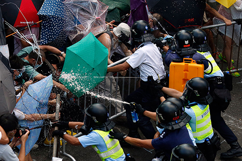 | ▲ Protesters are blocking tear gas and pepper sprays with umbrellas Photography from Google | ||