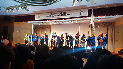 ![]() Freshmen are listening to introduction of each department at the Freshmen Camp of the College of the Social Science. /Photograph from Lee Seung-min |