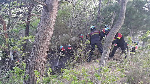 ![]() The special firefighters are putting out embers. /Photo courtesy of EastCoastal Fire Center of Gangwon Province |