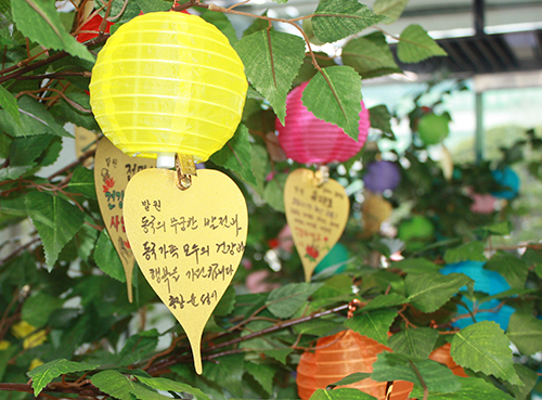 Dongguk University launched a meaningful campaign under the lead of Jeonggakwon to practice mercy, which is Dongguk University’s spirit of foundation. It is called “Sharing mercy and hanging wish fulfillment lantern” campaign. A total of 24 trees of hope have been planted in the main lobby of 12 buildings in Dongguk University, including the main building. Any Donggukian, including students, professors, employees, alumni, or Buddhists, can hang the wish fulfilment lantern on the tree and celebrate personal anniversaries, thank for the good things, and pray for the fulfillment of one’s wish. Offering lantern for the New Year’s wishes was only from January 19th to February 26th. However, Jeonggakwon declared that offering the tree of hope or a lantern is always possible.