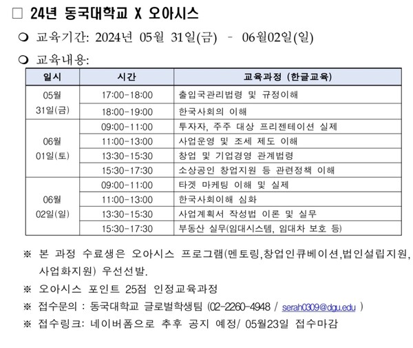 Dongguk University and OASIS will hold a foreign start-up seminar together in the first semester of 24.