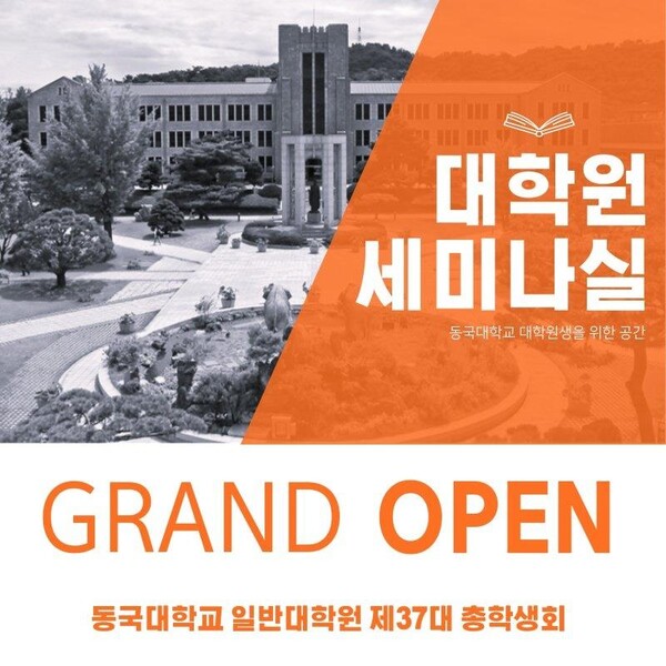 일반대학원 총학생회는 2024학년도 1학기에 ‘2024학년도 동국대학교 일반대학원생 만족도 조사’를 실시하며 ‘연구와 학술 공간 부족’이라는 원우들의 목소리를 확인했고, 대학 측에 지속적으로 학술 공간 마련을 요청한 결과 학술관 3층에 일반대학원생 전용 세미나실을 개설할 수 있었다.