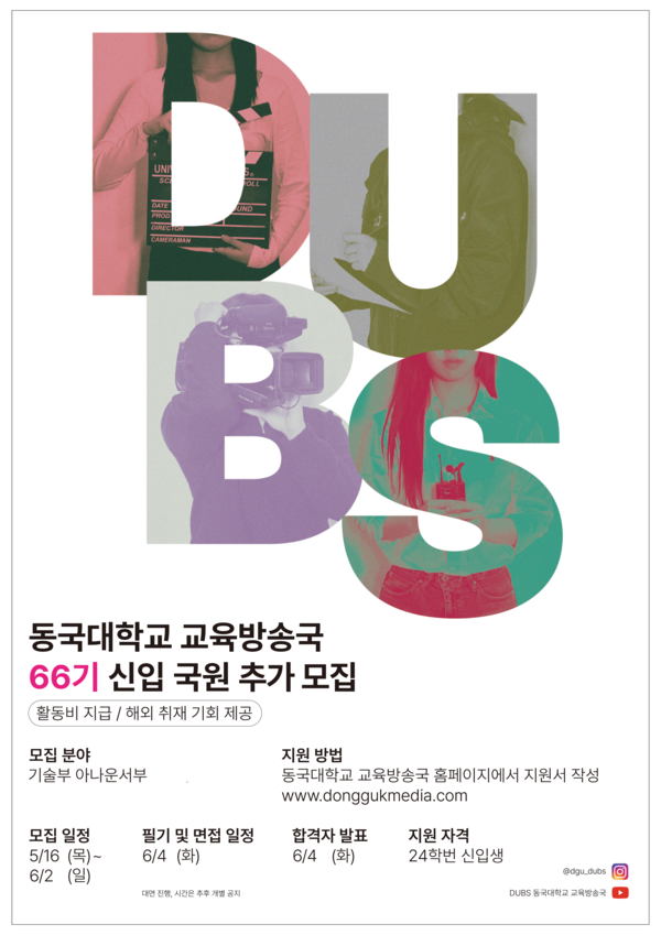 동국대학교 교육방송국 인스타그램DM(@dgu_dubs), 에브리타임 쪽지, 혹은 02-2260-8503~4