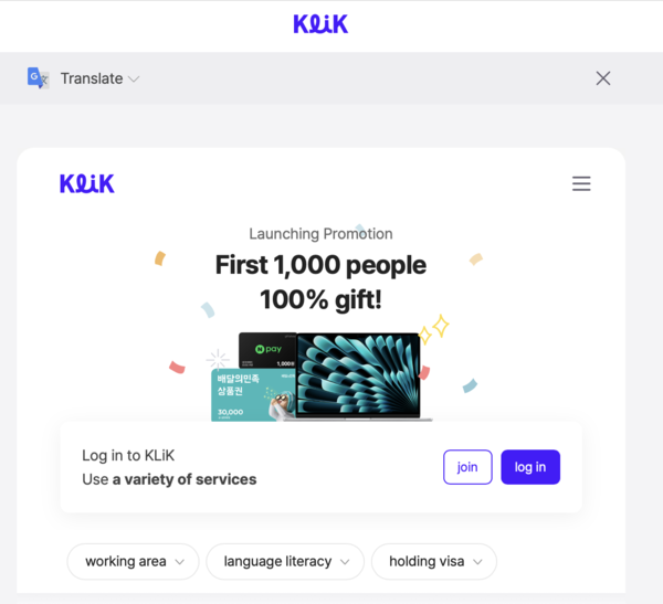 KLik has a function specialized for foreign job search. It helps domestic foreign talents find suitable jobs and provides opportunities to hire customized talents for companies. Considering the target of the service, it provides 28 language translation functions including Korean, English, and Chinese. Therefore, it minimizes language barriers that have been experienced in the hiring process.