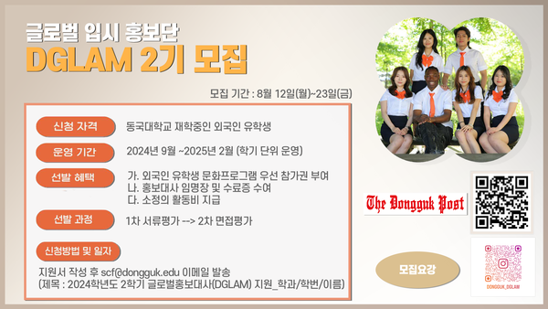 - Ambassador Title: Dongguk Global Ambassador (DGLAM)