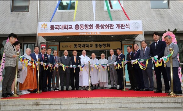 우리대학 총동창회가 지난달 17일 충무로영상센터로 동창회관을 이전 개관했다. 이날 진행된 개관식에는 윤재웅 총장을 비롯해 이사장 돈관스님, 문선배 총동창회장과 동문 120여 명이 참석해 축하했다.