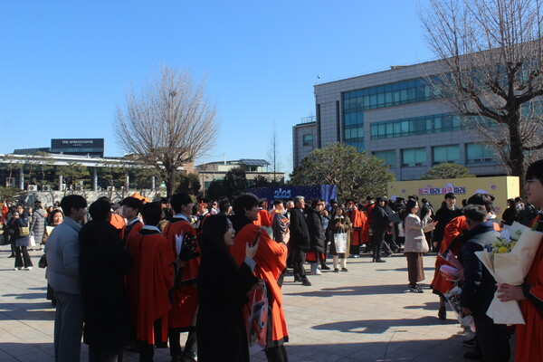 건학위원장 공로상을 받은 졸업생 조원준(법학 24졸)은 “이 자리에 오기까지 어떤 한 인연도 도움을 받지 않은 분이 없다”며 “정말 희박한 확률의 기막힌 우연들이 모여 무사히 졸업하게 된 것 같다”고 감사 인사를 전했다. 총장 공로상을 받은 졸업생 송호정(국어국문 24졸)은 “동국이라는 세계 속에서 귀한 독자와 비평가, 스승을, 함께 쓰는 이들을 만나며 비로소 한 명의 작가로 성장할 수 있었다”며 “어지러운 날들의 계속이지만 함께라는 낱말이 가진 힘은 흐려지지 않으니 함께 남은 겨울을 따뜻하고 평안하게 보낼 수 있기를 바란다”고 소감을 밝혔다.