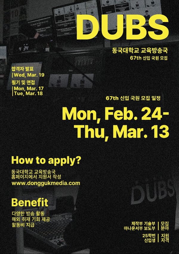 동국대학교 교육방송국 DUBS에서 67기 수습국원을 모집합니다.