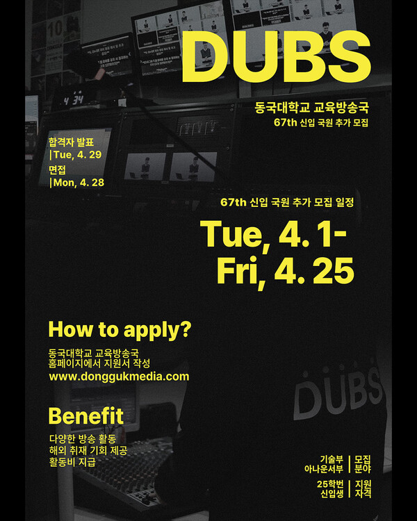 동국대학교 교육방송국 DUBS에서 67기 수습국원을 추가 모집합니다.