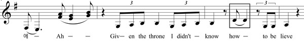 <케이팝 데몬 헌터스>의 주제곡 ‘골든’의 음원 조회수가 3억을 훌쩍 넘어섰다. ‘골든’은 한국음악적 매력뿐 아니라 설법이라 할 정도로 불교적이다. 음악적으로 보면, 3연음으로 시작한 전주에다, 여린내기로 시작하는 서양음악과 달리 잉어걸이로 한 박자 먹고 “I was a ghost. I was alone.”으로 시작하여 ‘hah’하고 탄식한다. 이어서 우리말 ‘하’, 영어 부사 how까지 ‘하’소리(악보에 네모 표시)로 활용하는 기법이 신의 한 수다. 한국 특유의 3연음에다 붉은 악마 응원 박수 같은 ‘따단따(♪♩♪)’, 2박자를 3분할하는 교대죽 리듬이 절묘하게 어우러진다.