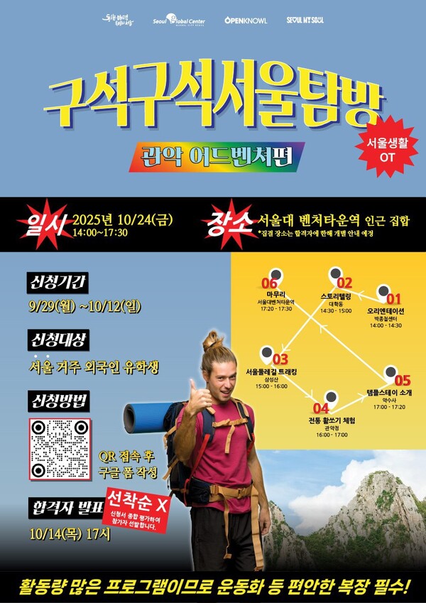 Seoul Global Center’s "Discover Seoul" program returns this autumn. This time, participants will explore Gwanak District. The program offers international students a chance to experience Korea’s popular hiking trend and try traditional archery. On a cool autumn day, participants can enjoy Seoul’s charms while making new friends.